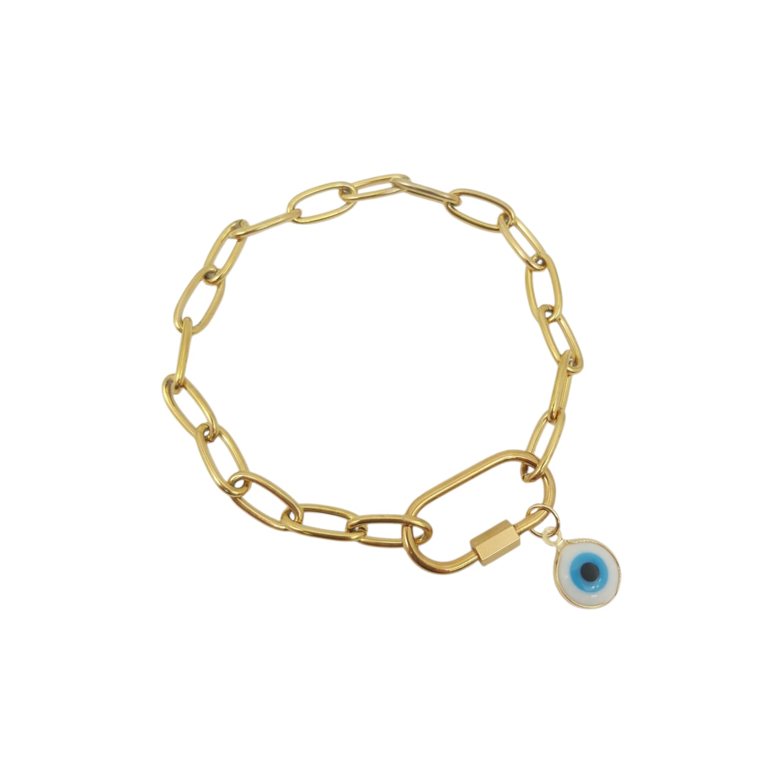 PULSERA ACERO DORADO, DIJE ENCHAPADO.